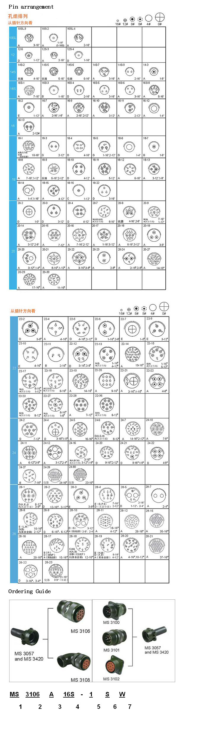 Features:MS series circular connectors are used extensively in line connections between electrical equipment ,various instruments and meters .These connectors meet the standard -C-5015,have the features of light weight ,aluminium alloy material ,wide range ,threaded coupling ,good sealing performance ,resistance against corrosion ,high conductivity and high dielectric strength .It’s the ideal product to replace the -C-5015 series .They are interchangeable with the same category each other.